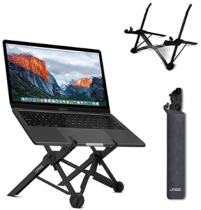 es este ligero soporte elevable y plegable que podremos llevar a cualquier sitio dado que tan solo pesa 200 gramos y nos permite dejarlos reducido al máximo.